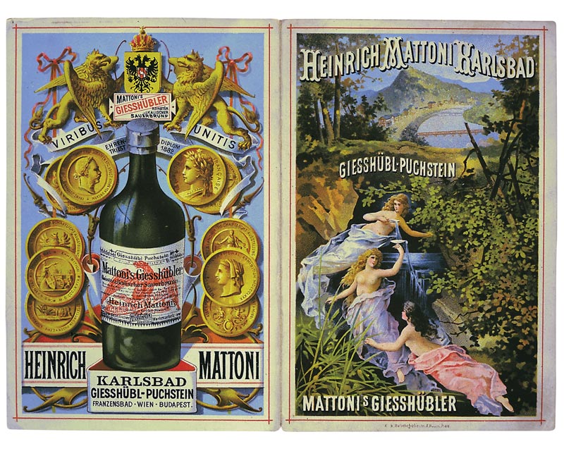 The Mattoni company is established. The "Mattoni Mineral Water" ("Mattoniho kysibelka") becomes one of the best known mineral waters in the world. Its success inspired Mattoni to buy the whole area of the spring from the Count of Černín and to