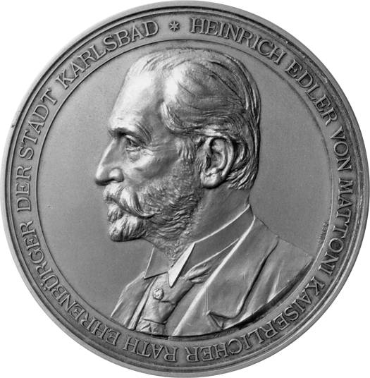 Heinrich Mattoni was ennobled for his merits regarding Imperial health and fame of the Monarchy in the world, and was granted the hereditary noble title of "Free Lord von Mattoni".